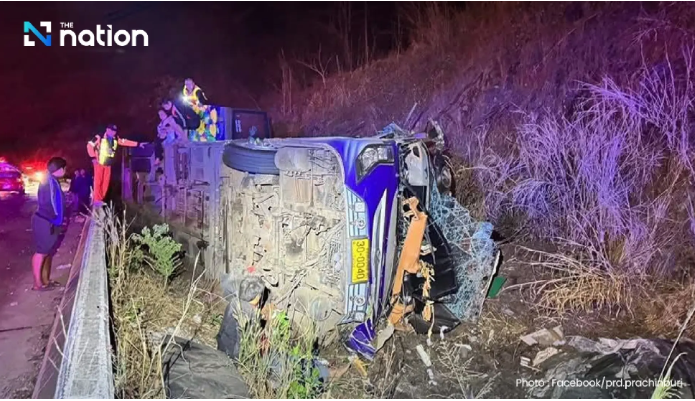 Prachin Buri, Suarathailand- Lebih dari 40 orang terluka, dan 18 orang kehilangan nyawa setelah sebuah bus wisata pendidikan terbalik saat menuruni gunung Khao San Pu Tone di distrik Na Di, Prachin Buri, pada hari Rabu.