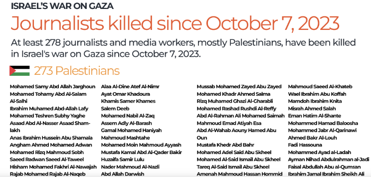 Serangan ini menambah jumlah korban tewas jurnalis di Gaza sejak 7 Oktober 2023 menjadi setidaknya 278 jurnalis dan pekerja media, 273 di antaranya warga Palestina, menurut penghitungan Al Jazeera.