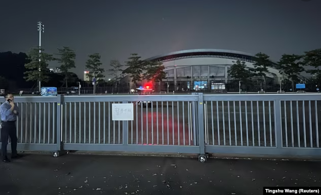 Video menunjukkan petugas pemadam kebakaran melakukan CPR (pernafasan buatan) pada seorang korban, sementara orang-orang diminta meninggalkan lokasi kejadian. Hal tersebut disampaikan oleh blogger berita dan pembangkang Li Ying, yang di media sosial X dikenal sebagai “Guru Li.” Akunnya memposting berita harian berdasarkan kiriman pengguna. Dalam video tersebut, puluhan orang tergeletak tengkurap di lintasan lari sebuah pusat olah raga. Salah seorang perempuan yang menjadi korban terlihat mengatakan “kakiku patah.”