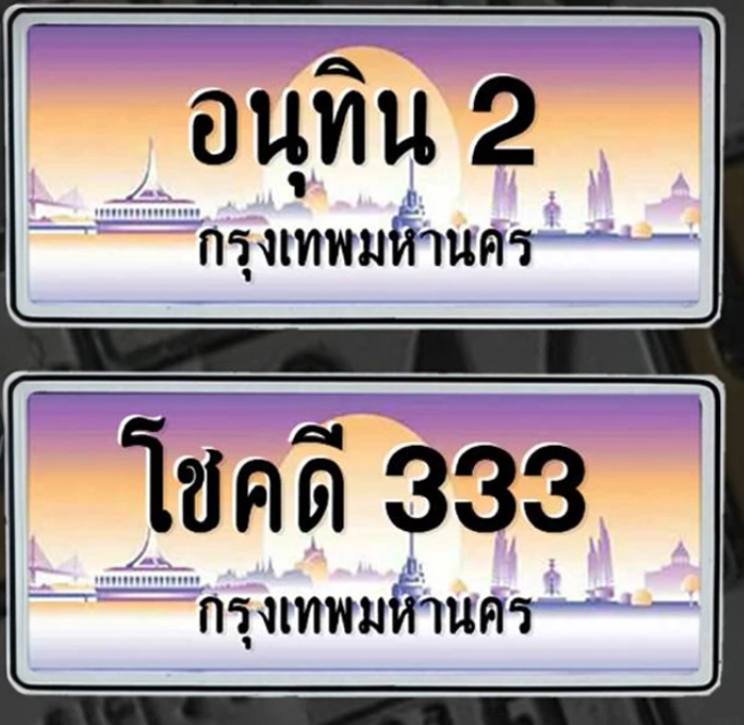 Pelat nomor mobil yang dipersonalisasi dapat menggunakan huruf Thailand tambahan untuk membentuk kata pilihan pengguna.