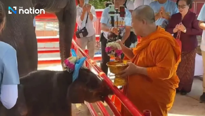 Kedua kepala biara yang dihormati itu mempersembahkan benang suci dan memercikkan air suci pada gajah kembar tersebut. Para penggemar si kembar juga hadir dan menyumbangkan makanan untuk ibu mereka.