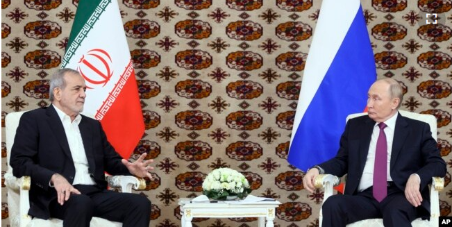 Turkmenistan, Suarathailand- Presiden Rusia Vladimir Putin menggelar dialog dengan Presiden Iran, Masoud Pezeshkian, pada Jumat (11/10) di Turkmenistan. Putin berambisi memperdalam hubungan dengan apa yang disebutnya Timur Global dan Selatan Global setelah perselisihannya dengan AS dan Uni Eropa terkait perang Rusia di Ukraina.