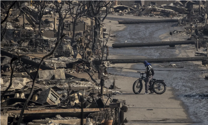 Puluhan blok rata dengan tanah hingga menjadi puing-puing membara di Pacific Palisades yang indah. Hanya garis besar rumah dan cerobong asapnya yang tersisa. Di Malibu, hanya untaian pohon palem yang menghitam yang tersisa di atas puing-puing tempat rumah-rumah tepi laut dulu berdiri.