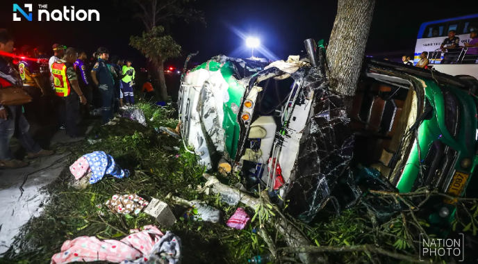 Polisi menduga pengemudi tidak terbiasa dengan jalan dan kehilangan kendali di tikungan, menyebabkan bus Dee Mee Prom Co Ltd terbalik dan menabrak pohon.