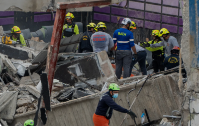 Lebih dari 300 petugas penyelamat, dibantu oleh anjing pelacak, telah menghabiskan waktu dua hari menyisir tumpukan batu bata, batang baja, dan lembaran timah yang runtuh, dengan bantuan petugas pemadam kebakaran dari Puerto Riko dan Israel.