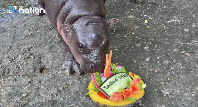 Dalam sebuah video yang direkam pada hari Senin di Kebun Binatang Terbuka Khao Kheow di Chonburi, Moo Deng terlihat sedang memakan kue yang bertuliskan nama Trump.