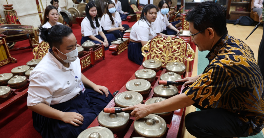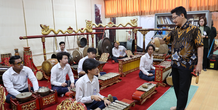 20 mahasiswa dari dari Fakultas Seni Rupa dan Seni Terapan Universitas Chulalongkorn mengikuti pembelajaran seni musik tradisional Indonesia.