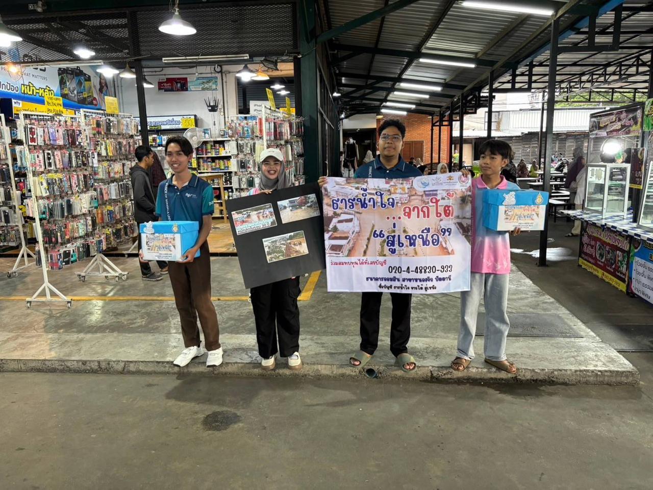 Klub Mahasiswa Cinta Damai (PosBo), Universitas Pangeran Songkla, Kampus Pattani (Universitas Pattani), menyerahkan barang sumbangan untuk membantu korban banjir di Provinsi Chiang Rai.