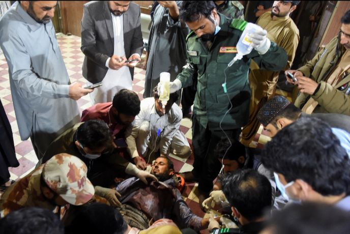 Seorang penumpang yang diselamatkan dari kereta setelah diserang oleh militan separatis menerima pertolongan medis di stasiun kereta api di Mach, Balochistan, Pakistan pada 11 Maret. (Foto: Reuters)