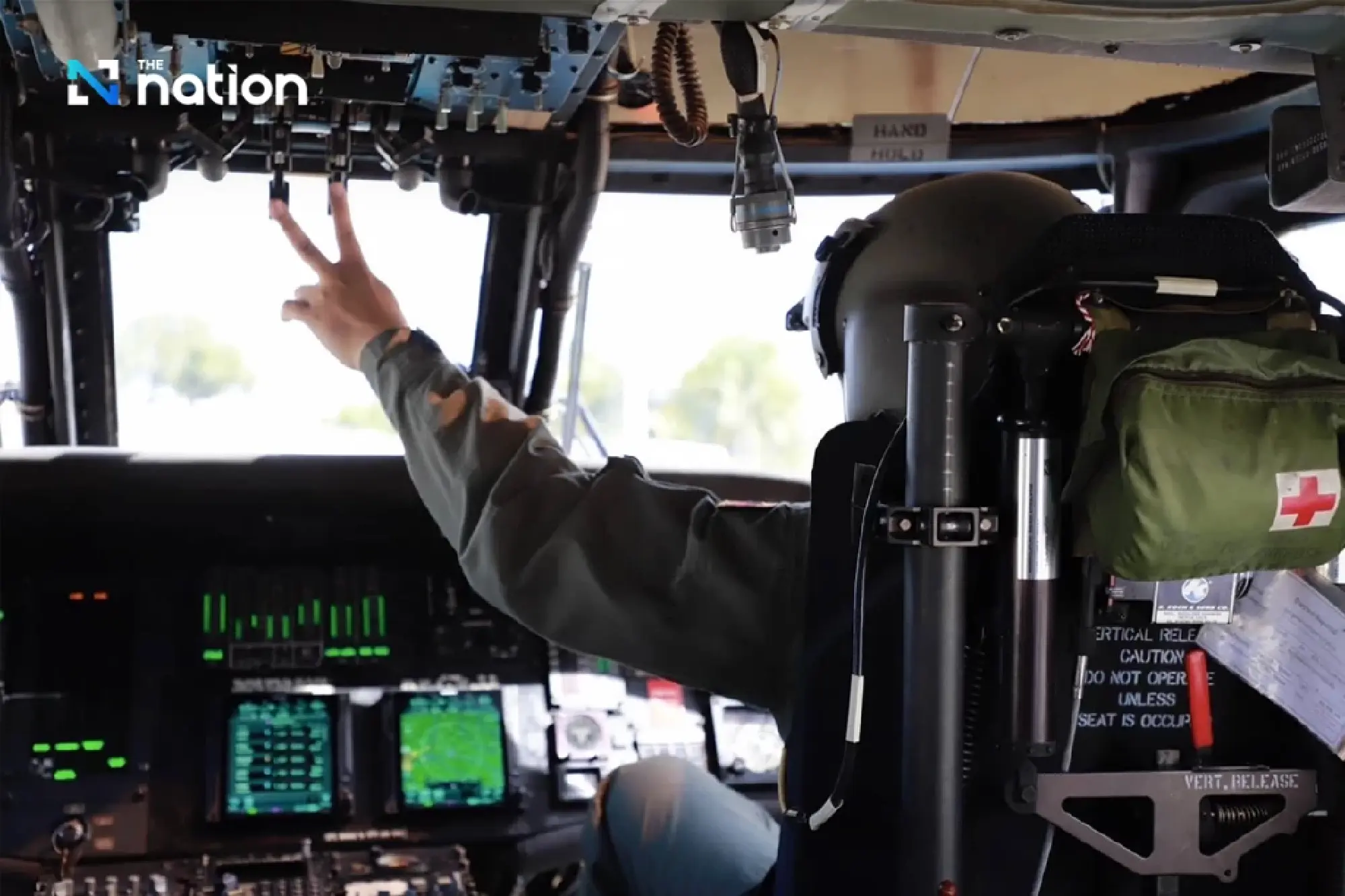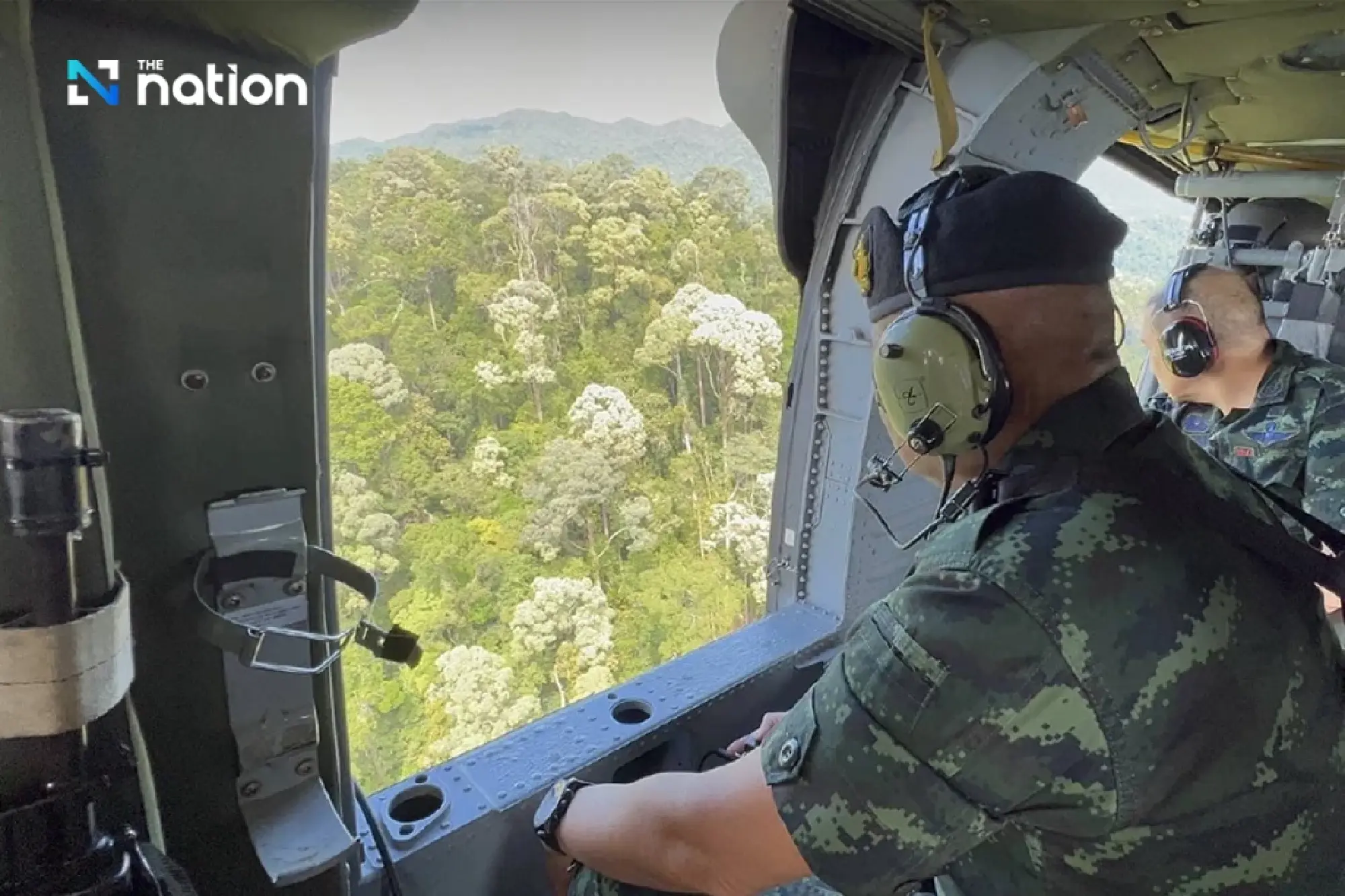 Letjen Paisal Nusang, komandan Wilayah Angkatan Darat ke-4, melakukan pengintaian udara di atas wilayah hutan perbatasan Provinsi Narathiwat bersama staf operasi Komando Operasi Keamanan Dalam Negeri Wilayah 4 Komando Depan.