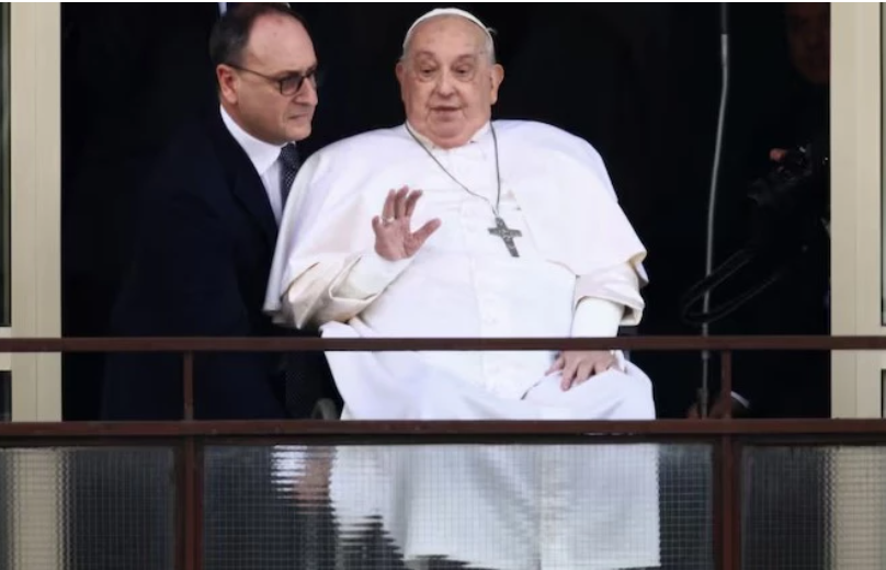 Vatikan, Suarathailand- Paus Fransiskus kembali ke Vatikan pada hari Minggu setelah selamat dari pertempuran lima minggu di rumah sakit melawan pneumonia ganda yang menjadi krisis kesehatan paling serius selama 12 tahun kepausannya.