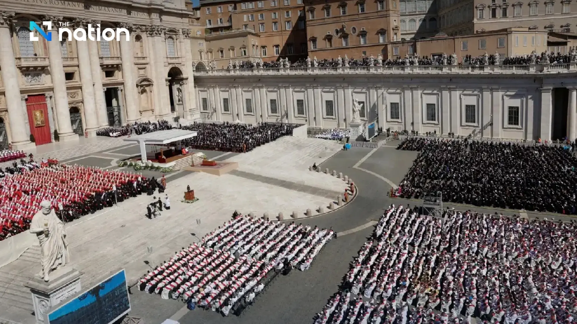 Vatikan, Suarathaiand- Peti jenazah kayu Paus Fransiskus dibawa ke Lapangan Santo Petrus pada hari Sabtu saat dimulainya Misa pemakaman yang dihadiri oleh banyak pelayat, termasuk para pemimpin dunia, ulama, dan peziarah.