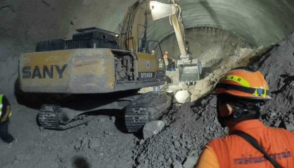 Sebuah ekskavator juga terjebak, menurut seorang insinyur yang bekerja untuk proyek kereta berkecepatan tinggi Thailand-Tiongkok, yang mana terowongan yang rusak tersebut merupakan salah satu bagiannya.