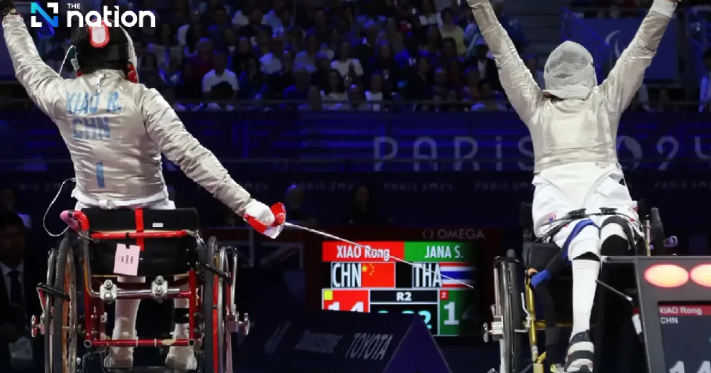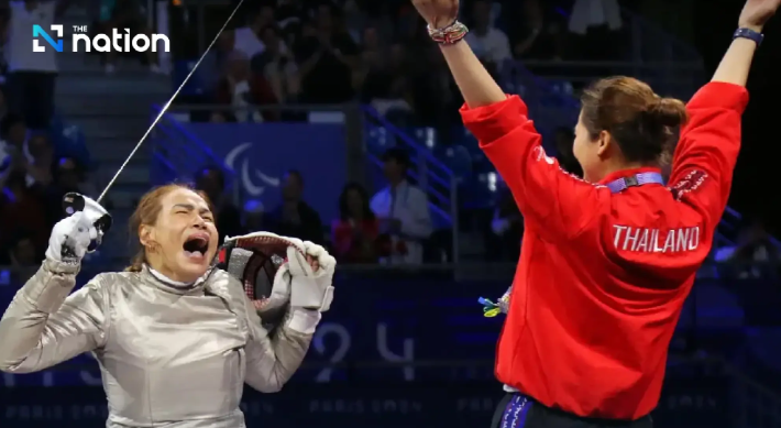 Atlet anggar kursi roda Thailand Saysunee Jana memenangkan medali emas keempat untuk Thailand dalam kategori pedang putri B di Paralimpiade di Paris, Prancis.