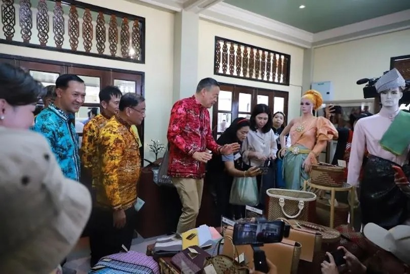 Perdana Menteri Srettha Thavisin juga mengunjungi booth pameran, selain membeli tiga tas anyaman buatan masyarakat lokal di provinsi Narathiwat yang akan segera ia bawa dalam promosi pariwisata di Perancis.