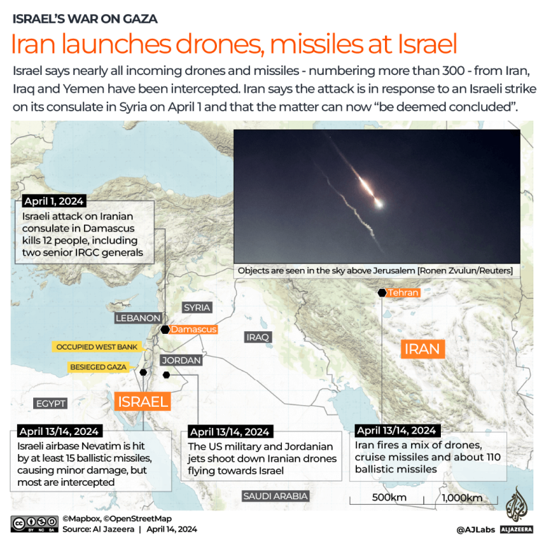 Iran telah melakukan serangan ke Israel sebagai respons atas serangan Israel ke Konsulat Iran di Suriah yang menewaskan tujuh orang. (thenation, aljazeera)