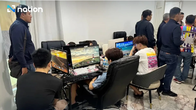 Chonburi, Suarathailand- Polisi dan petugas imigrasi Chonburi pada hari Jumat menggerebek sebuah rumah mewah di distrik Bang Lamung, provinsi Chonburi, setelah mendapat informasi bahwa rumah tersebut dijadikan markas oleh geng peminjaman daring internasional.