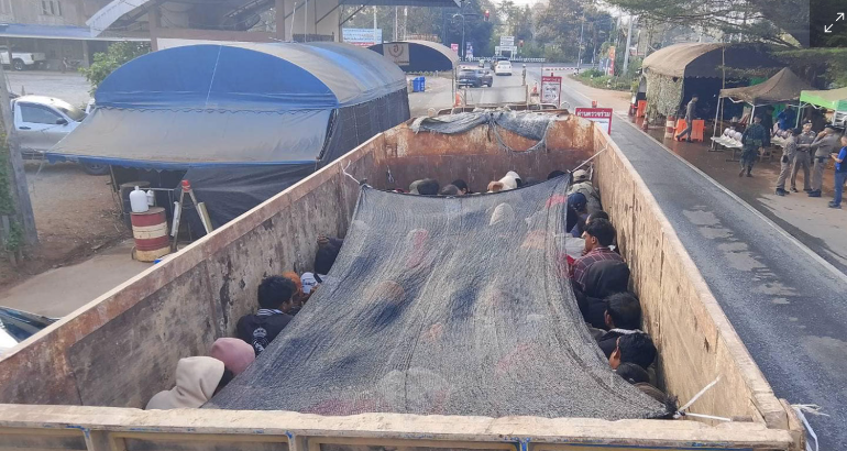 Kanchanburi, Suarathailand- Sebanyak 169 migran ilegal asal Myanmar ditangkap pada Jumat pagi setelah ditemukan berdesakan di dalam truk gandeng di distrik Thong Pha Phum. Dua penyelundup asal Thailand juga ditangkap.