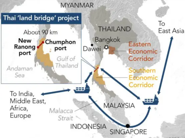 Jembatan darat di Thailand Selatan itu akan berfungsi sebagai penghubung antara Samudra Pasifik dan Samudra Hindia. Megaproyek itu melibatkan pembangunan pelabuhan laut dalam di Chumphon di pesisir Teluk Thailand dan Ranong di sisi Andaman serta pembangunan jalur transportasi yang menghubungkan kedua pelabuhan itu.