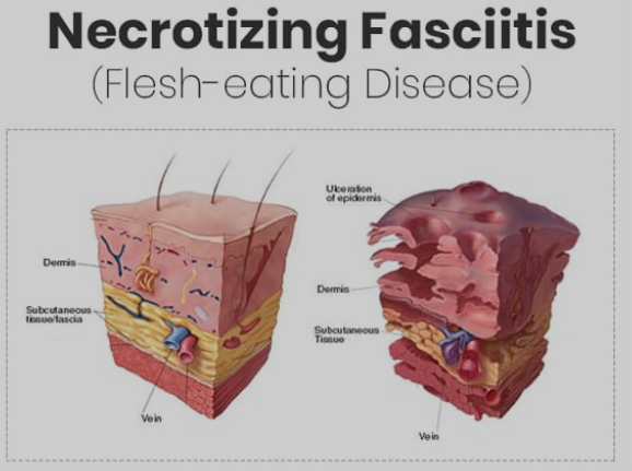 > Penyakit pemakan daging (infeksi bakteri pemakan daging) atau necrotising fasciitis bisa menyebabkan kematian.