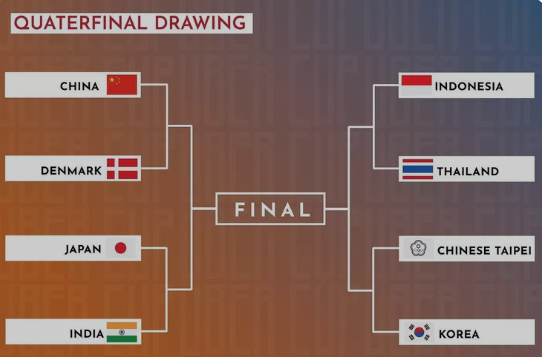 Di bagian lain tim Uber China bertemu dengan Denmark dan Jepang menghadapi India.