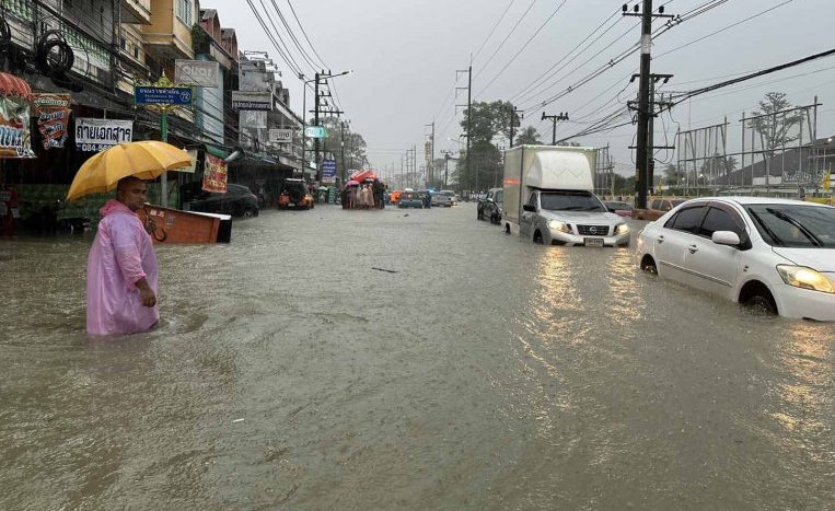 Di distrik Koh Samui, Surat Thani, hujan deras sepanjang malam memicu banjir di beberapa daerah.
