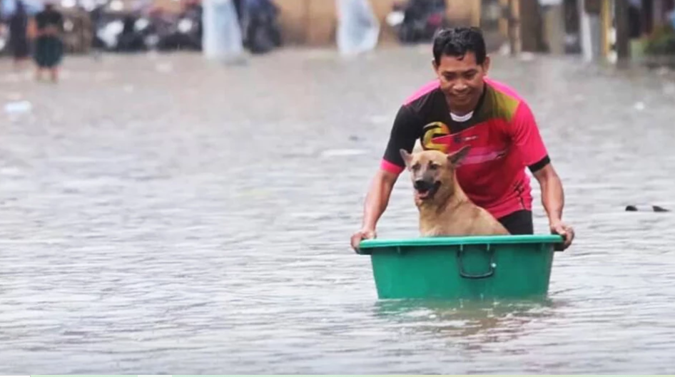 Penduduk setempat terpaksa memindahkan barang-barang mereka ke tempat yang lebih tinggi, sementara mengevakuasi enam anjing liar ke zona aman di Taman Khwan Mueang.