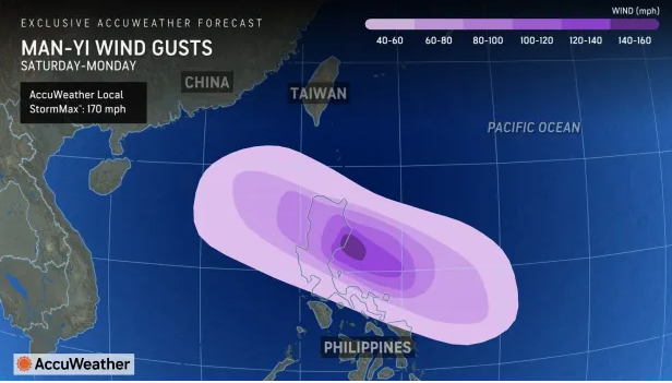 Man-yi bertambah kuat semalam di Pasifik barat, dengan angin kencang hingga 150 km/jam dan hembusan hingga 185 km/jam. Diperkirakan akan menerjang provinsi Catanduanes timur antara Sabtu malam dan Minggu pagi.