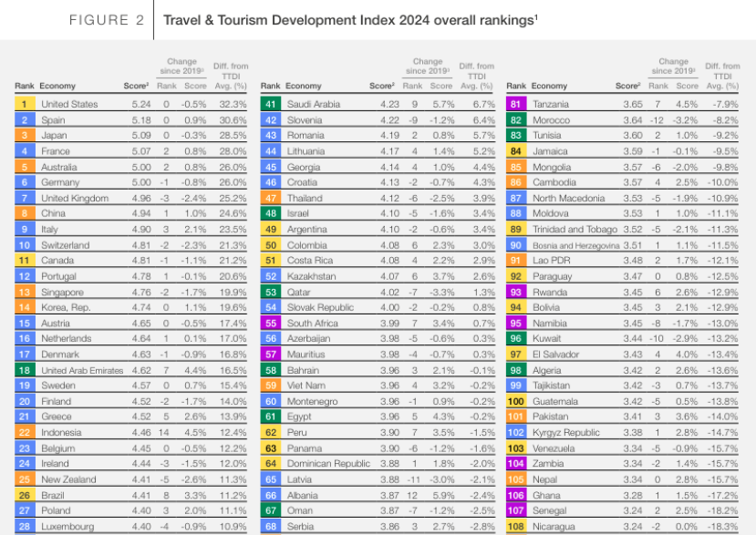 Forum Ekonomi Dunia (WEF) meluncurkan Indeks Pembangunan Perjalanan & Pariwisata 2024, dan hasilnya mengejutkan banyak orang. Dirilis pada tanggal 21 Mei, Indeks ini memberikan evaluasi komprehensif terhadap lanskap perjalanan dan pariwisata global, menilai kondisi penting yang diperlukan untuk investasi dan operasional di sektor ini.