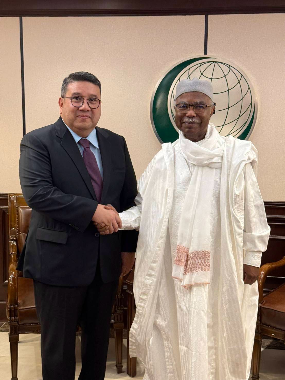 Jeddah, Suarathailand- Sekretaris Jenderal Pusat Administrasi Provinsi Perbatasan Selatan (SBPAC), Letnan Kolonel Pol. Wannapong Kotcharag, bersama sejumlah pejabat Kementerian Luar Negeri Thailand serta delegasi dari Pusat Administrasi Provinsi Perbatasan Selatan Bertemu dengan Hissein Brahim Taha, Sekretaris Jenderal Organisasi Kerja Sama Islam (OKI) di Jeddah, Arab Saudi pada 13 Februari 2025.
