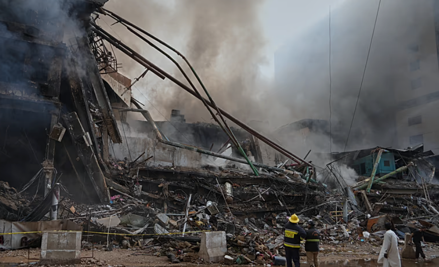 Kebakaran dimulai pada Sabtu malam di Gul Plaza, yang menampung 1.200 toko di kompleks bertingkat yang tersebar di area yang lebih besar dari lapangan sepak bola. Kobaran api di pusat bersejarah Karachi berkobar selama lebih dari 24 jam sebelum sebagian besar dipadamkan.