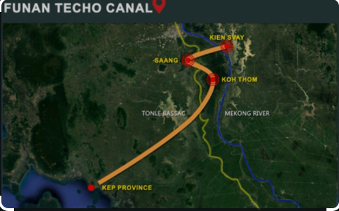 Kanal Funan Techo direncanakan sepanjang 180 km, melewati provinsi Kamboja, dengan sekitar 1,6 juta orang tinggal di kedua sisi sungai.